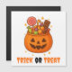 Comparte la alegría festiva de Halloween con esta tarjeta magnética única que presenta un cubo de calabaza sonriente que se desborda de caramelos y piruletas coloridos. Perfecta como invitación a una fiesta, saludo de temporada o recuerdo decorativo divertido para tu nevera o tablero de oficina. ¡Una forma divertida y práctica de celebrar la temporada de miedo!