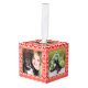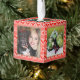 Un adorno festivo personalizado de cubo de fotos con fotos de tu elección, enmarcado por un diseño de suéter blanco y rojo feo con forro dorado. También puedes dejar las fotos temáticas de los Navidades generales en su sitio si quieres. Un regalo magnífico para mejorar el ambiente de los días festivos.