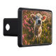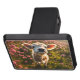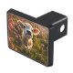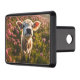 Un becerro escocés oscuro para tu cubierta de trineo. Él está en un campo de flores.