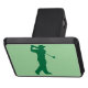 Imagen de un golfista verde terminando su oscilación en un fondo verde claro. Esto es algo que se puede personalizar y diseñar para cualquier actividad que se desee.