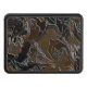 El gran diseño oscuro da un aspecto de camo. Giros marrones oscuros alrededor con un toque azul claro