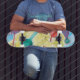 Cubierta de monopatín con una ilustración moderna y colorida!