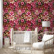 Disfrute del lujo con este recubrimiento de pared botánica rosa y dorado, un diseño de cáscara y palo con exquisitos detalles florales y un acabado radiante. Ideal para añadir un toque glamuroso a la decoración.