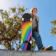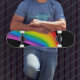 No querrás ir a la cubierta de este fantástico patinaje con un diseño fresco de arcoiris sobre un fondo negro. Este elemento incluye sólo el deck. Cubiertas de diferentes tamaños. Hardware no incluido. Obra de arte de la ropa y los coleccionables de Buttercup.