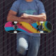 Cubierta del monopatín de la playa de la palmera del arco iris del verano