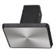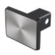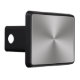 Esta tapa de paso del remolque tiene un aspecto metalizado cepillado. El diseño tiene un aspecto plateado y está en un patrón radial. El aspecto plateado no está hecho de Relieve metalizado.