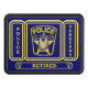 Esta cubierta de trinquete está decorada con el Escudo de insignias del Sargento de la Policía Jubilado que se puede personalizar con un nombre.