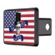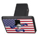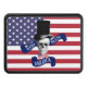 El diseño americano patriótico divertido con un cráneo gótico del vintage de la diversión que lleva el tophat del estilo de Abraham Lincoln y una bandera spangled estrella americana roja de la bandera de las barras y estrellas blancas y azules, con dios bendice decir del texto de América.