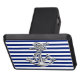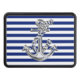 Un cromo de plata náutico moderno como estilo del applique del ancla en una decoración de las rayas de azules marinos para un regalo de encargo cada uno encendido, o del barco gozará.