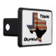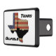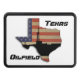 La forma del estado de Tejas se llena de un fondo de la bandera de los E.E.U.U. y de la silueta negra de un aparejo y de una fraseología de la perforación petrolífera, "campo petrolífero de Tejas".