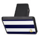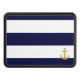 Diseño único y elegante con franjas náuticas azules y un brillante ancla dorada.