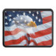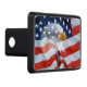 Cubierta patriótica del remolque de enganche con cierre hermoso encima de la foto de Eagle calvo sobrepuesta sobre la bandera americana.