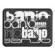 Guay, reproductor de banjo blanco, instrumento musical, banda, palabra de música plantilla de patrón de texto en nube sobre fondo de rayas diagonales negro y gris oscuro! Un gran regalo para los niños, adolescentes, adolescentes o adultos; ¡niño o chica! Diseño moderno y bonito con diferentes tipos de letra en blanco y gris.