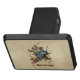 Representación de una batalla entre un bogatyr ruso y un guerrero asiático, ambos a caballo. También aparece un texto en cirílico (ruso) que dice "Б о г а ы р" (Bogatyr). Bogatyri son personajes heroicos encontrados en épicas eslavas medievales. Son similares a los caballeros andantes de la literatura occidental. La mayoría de las historias sobre bogatyri giran alrededor de la corte de Vladimir I de Kiev (958-1015). Se presume que algunos bogatyri son figuras históricas. Bogatyri protegía la tierra y el pueblo rusos contra los invasores, especialmente los tártaros. A algunos se les atribuían poderes y fortalezas que eran casi divinos. Esta imagen se adapta a un ilustracion de dibujo de línea blanca y negra en "П о в е с ь・ sni Bursa Burn Bursa Burn BurnBurn" (Un cuento de héroes brillantes BurnBurn BurnBurn Burn BurnBurnBurn" (Una historia de héroes brillantes". Ciudad Kiev y el gran azote de la tierra rusa) de Tamara Likhiotal; publicado en la URSS en 1974.