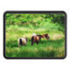 Caballos pastoreando en una pradera de verano. Acuarela. Gales.