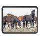 Diseño fotográfico de un rebaño de caballos esperando ser alimentados.