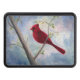 De las técnicas mixtas originales que pintan por Brenda Thour de una sentada cardinal masculina roja en una rama de árbol desnuda con un cielo azul y rosado abstracto. Copyright de Brenda Thour 2005.