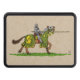 Un caballero del siglo XV vestido con armadura de placas baja la lanza y empuja a su destripador (caballo de guerra) a una carga en este ilustracion original de Richard H. Fay.
