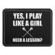 Los jugadores femeninos del lacrosse, mujeres entrenan, los equipos y los fans del deporte bromean sí, yo golpean como un chica. ¿Necesite una lección? Control hacia fuera que este divertido crea para requisitos particulares en camisetas, camisetas, tazas, casos, regalos y ropa.