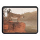 El ocre (roya) y el bronceado son los tonos predominantes en esta pintura digital de un cougar encaramado en un puesto elevado de rocas mientras se explora intensamente por las presas de abajo. La escena está en algún lugar del interior seco del Estado de Washington o de la Columbia Británica.