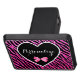 Añada el glitz y el encanto a su estilo personal con estas rosas fuertes y cubierta negra del tirón con rayas rosadas de moda del estampado de zebra del purpurina y un corazón negro donde usted puede personalizar añadiendo el nombre de cualquier chica femenino adolescente de la moda. Este modelo animal elegante con un arco rosado lindo está seguro de poner en evidencia el fashionista en cualquier persona. Imagen impresa del plano, purpurina o cinta no real. ©OhSoGirly