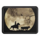 Un vaquero montando su caballo a la luz de la luna con ganado.
