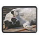 Un diseño fotográfico de un gato blanco y negro adorable.