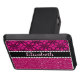 Rosas fuertes/un purpurina púrpura que chispea en la parte inferior, y rosado brillante/púrpura con un modelo negro del fondo del diseño del giro/del remolino en el top. El centro se deja para la personalización/personaliza rodeado con los diamantes de imitación blancos del diamante (falsos). (IMPRESIÓN DE LA FOTO)