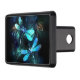 Dos libélulas transparentes, luminosas, turquesas, dibujadas de forma artística sobre el fondo nocturno con algas lacustres luminosas y luciérnagas. Flauta de dragón resplandeciente.