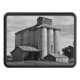 This black and white image captures a striking rural industrial scene, featuring towering rural grain silos and their weathered outbuildings. The monochrome style enhances the textures of aged concrete, corrugated metal, and overgrown grass, evoking a sense of quiet history and resilience in the Australian countryside. Atop the silos sits a central tower, likely housing machinery for grain handling and distribution. Flanking the silos are two smaller buildings with corrugated metal roofs, possibly used for storage or operational support. The surrounding landscape is open and grassy, dotted with a few trees, reinforcing the agricultural setting. This image blends rustic charm with industrial character, making it ideal for farmhouse décor lovers, rural landscape enthusiasts, and anyone who appreciates timeless agricultural architecture.