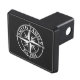 Emblema personalizable de la estrella de la brújula blanca sobre fondo gris oscuro.