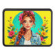 Arte adolescente brillante y que se siente bien: un lindo chica de cabello rojo con pecas, aretes de aro y una chaqueta de denim enmarcada por flores vibrantes. Estilo "estético" moderno y de alta resolución, perfecto para camisetas, pegatinas, cuadernos, estuches de teléfono y decoración de habitaciones para adolescentes.
