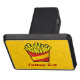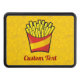 ilustracion personalizado de un pequeño paquete de patatas fritas. Iconos de contorno de comida basura fondo de patrón amarillo. Texto personalizado.