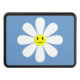 Aclare alguien día con esta cubierta sonriente del remolque de enganche de la margarita. Tiene una flor linda de la emoji en un fondo del gris azul.