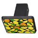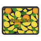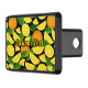 rodajas y hojas naranjas. Patrón sin foco. Color de fondo personalizado. Texto personalizado.