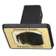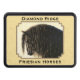 Caballo friesio negro con una larga melena ondulada que muestra los cálidos realces amarillos de la tarde del sol. Todo sobre un fondo amarillo dorado.