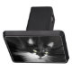 La manipulación fotográfica añade una mirada irreal polvorienta a este hermoso felino blanco y negro