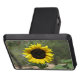 Una foto de un girasol por la mañana Sun con las gotitas de agua.