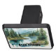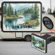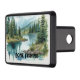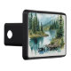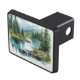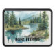Fishing sport themed hitch cover with simple text slogan "Gone Fishing", which can be edited to your own words. Printed with an eye-catching watercolor style image of a mountain peak and lake stream.
