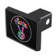 La cubierta del obturador del remolque Groovy presenta un símbolo de paz de tintes de estilo retro con texto curvo sobre fondo negro.