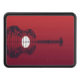 Bonita velada en un muelle con música. Cielo rojo con luna dentro de la guitarra.