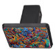 El Guitars combina elementos artísticos en el estilo mandala con la técnica de batik tradicional, realzada por colores vivos y brillantes. Está decorado con un cuadro artístico de mandala que se extiende orgánicamente por toda la superficie. Los mandalas son detallados y diseñados con precisión, donde cada elemento puede tener su propio significado simbólico. Los patrones circulares crean un efecto hipnótico y le dan a la guitarra un aura espiritual y artístico.