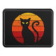 El gato negro de Halloween con atardecer retro. Ilustracion de estilo vintage.