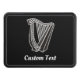 Icono de arpa blanca y negra con decoración de nudo celta. Color de fondo personalizado. Texto personalizado.