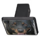 Perro de Rottweiler con su lengua que cuelga hacia fuera.