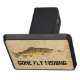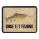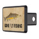 Pesca de mosca con trucha marrón después de un señuelo de pesca de mosca. Diseño de la artista ©Tina Hesskew de Fishing Hunting Life.