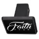 Diseño de texto de juegos de palabras visuales con la primera línea en un tipo de letra fuerte y hermoso impreso en negrita sobre la segunda línea de letras pequeñas de espacio amplio. Mantén el dicho inspirador 'Fe sobre miedo' para un regalo de ánimo, o usa la plantilla de texto para crear una nueva cita inspiradora. Editar para cambiar el texto blanco y el fondo negro a cualquier color que desee. ♡ Idyllfire