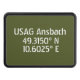 Coordenadas de mapa de latitud y longitud para USAG Ansbach / Katterbach Kaserne en Alemania Tipo de letra blanca estilo esténcil sobre fondo verde del ejército.