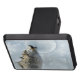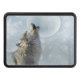 Lobo que grita en una luna azul con otra imagen del lobo en luna.