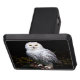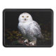 Fotografía de retrato animal de majestuosa búho de nieve parado en una rama.